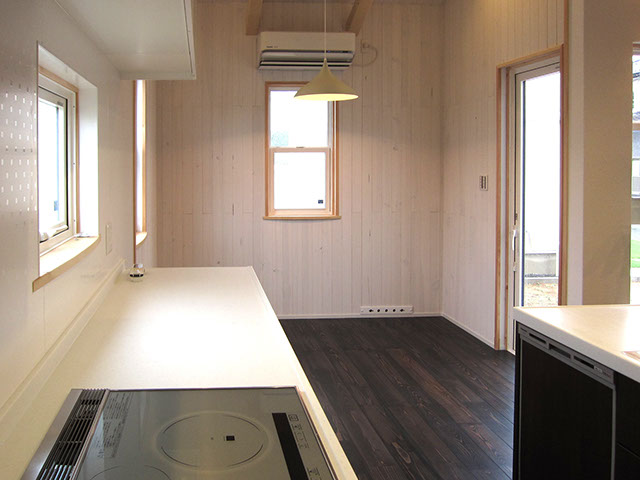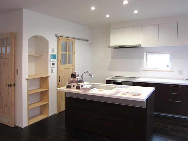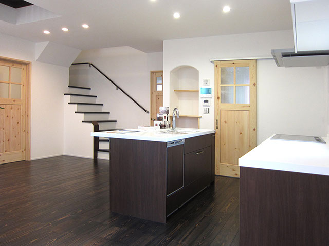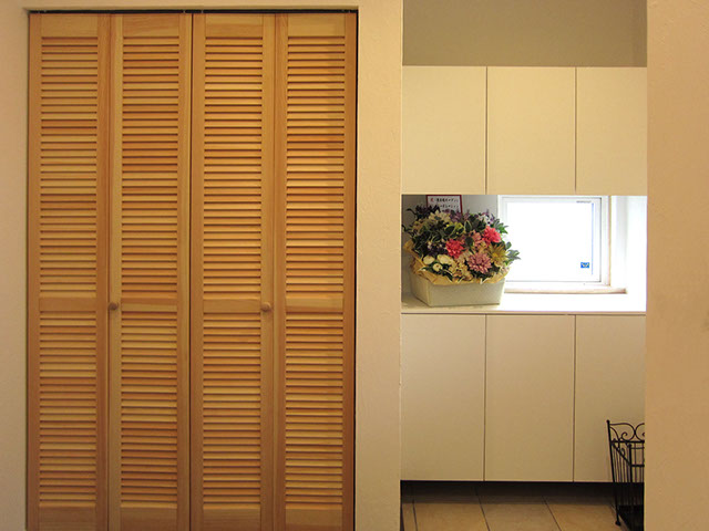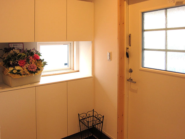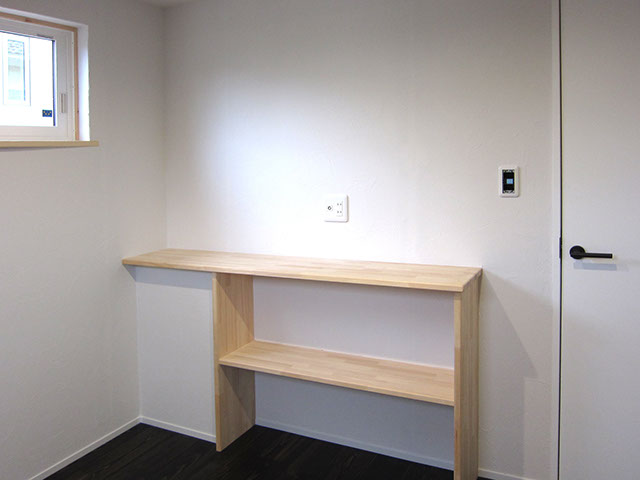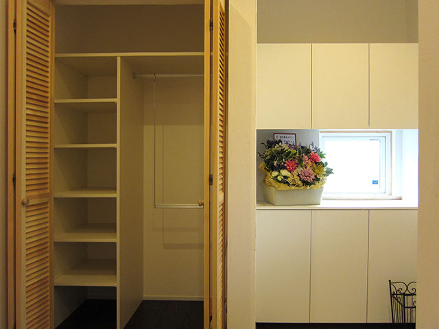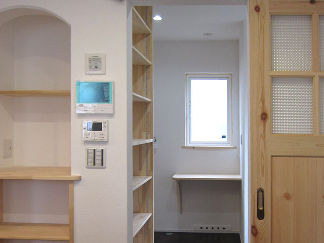 収納部に至まで全面に健康塗り壁を使用し家族の健康お守りいたします。