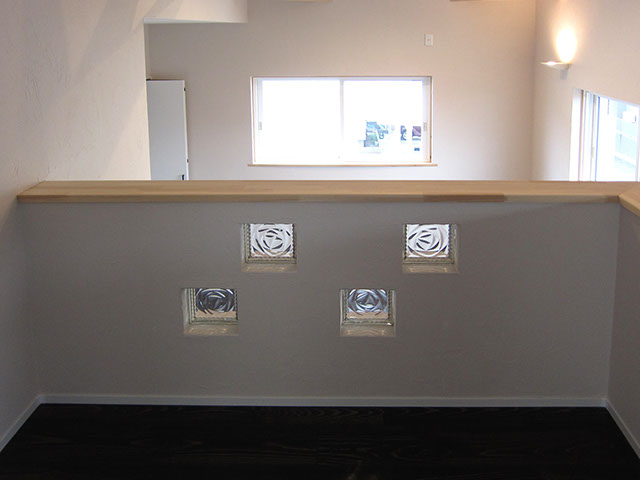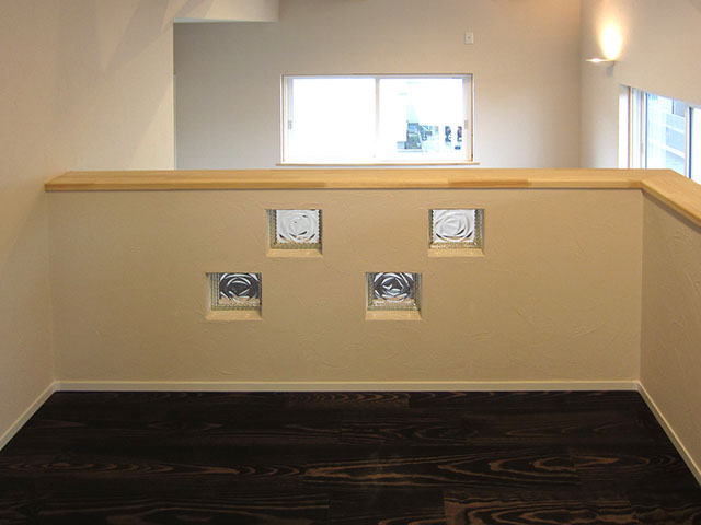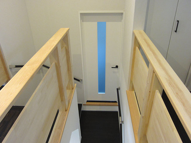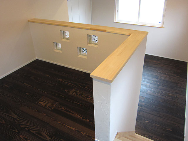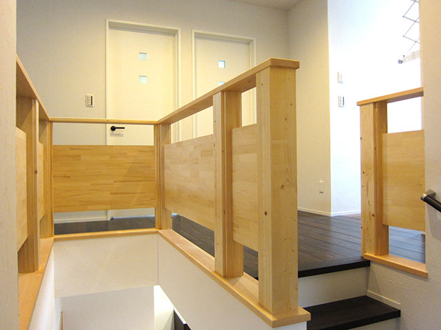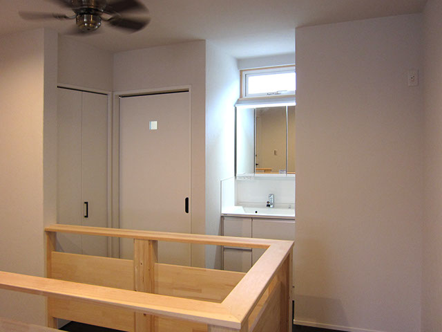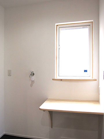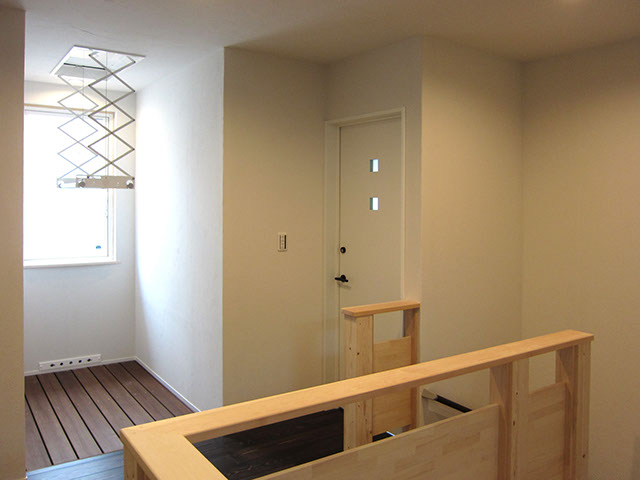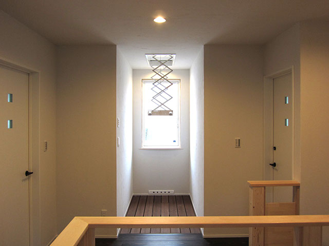 二階ホールには循環する通気を利用し、部屋干し専用のランドリースペースを準備ました。