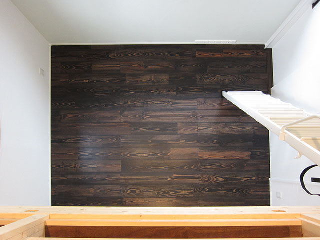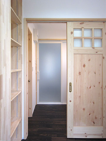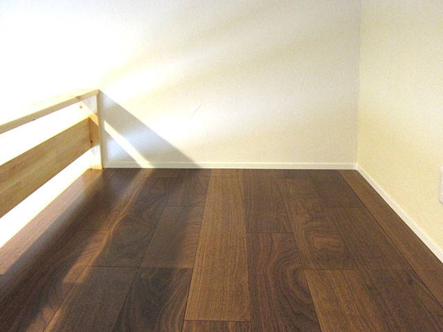 床材には椋(ムク)のフローリングを使って、暖かみと肌触りの良い質感を出しています。