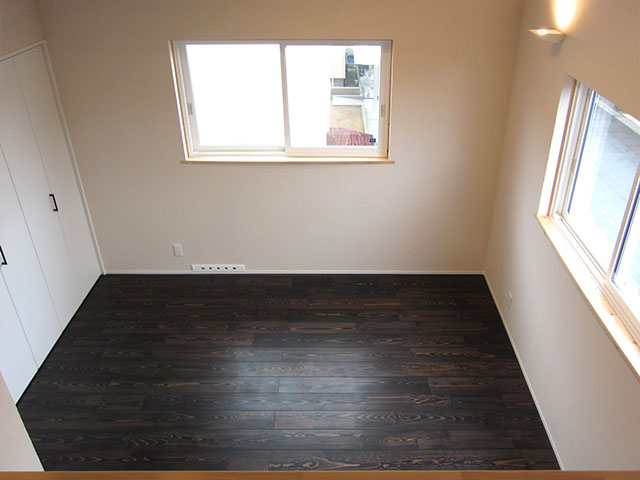 二階の子供部屋(二部屋)にはロフトが付いています。寝室の上にも四畳半のロフトスペースがあります。
