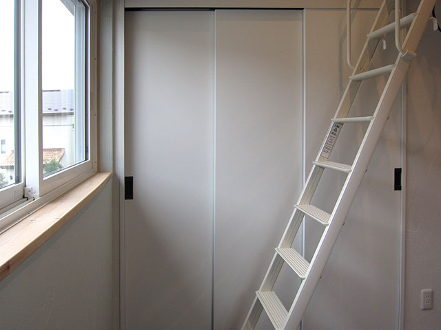 外部物入の上に中二階があり、趣味の部屋や納戸に使用できます。