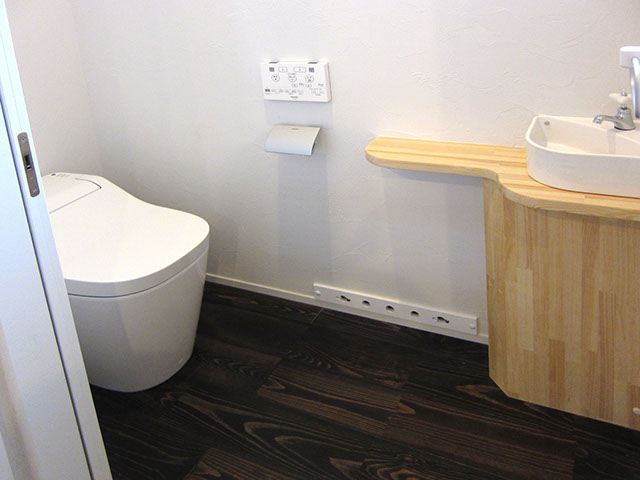 トイレ「アラウーノ」(パナソニック)を使用ししています。流すたびに泡と流水でしっかり洗浄します。色は、限定色を使用しています。