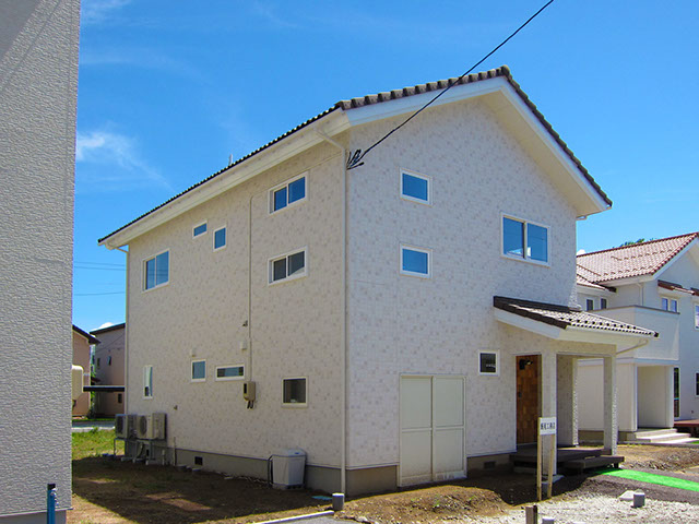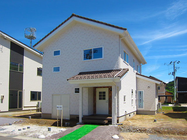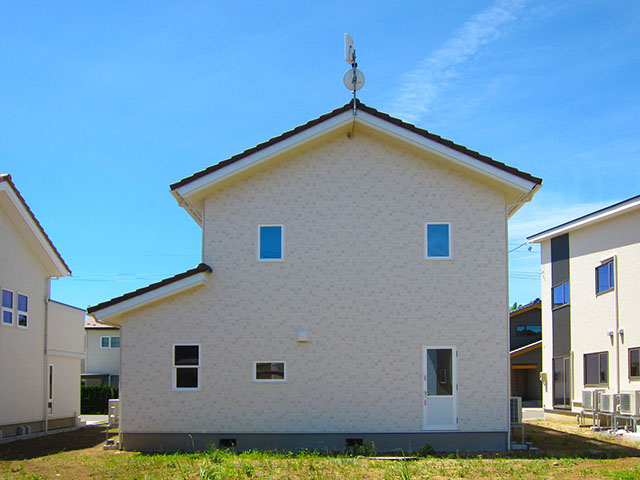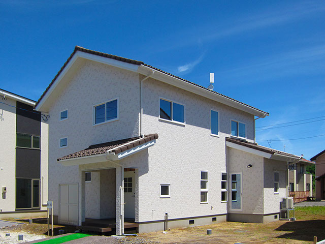 外観はホワイトを基調にし、屋根にブラウンをアクセントとしています。