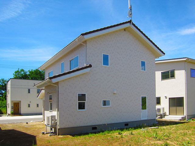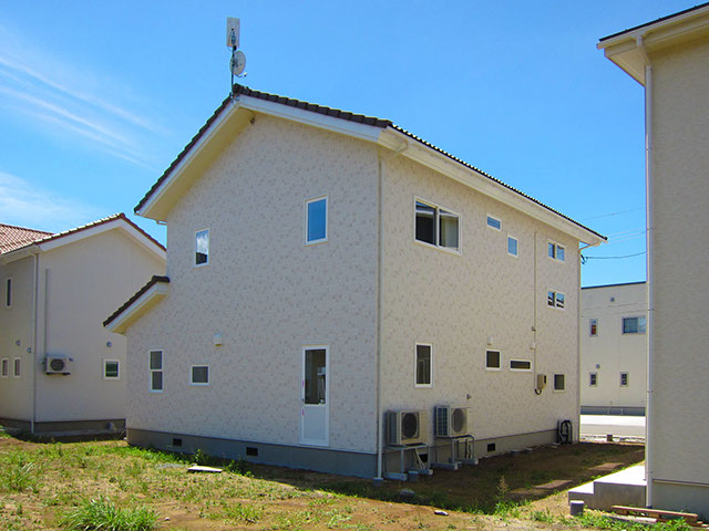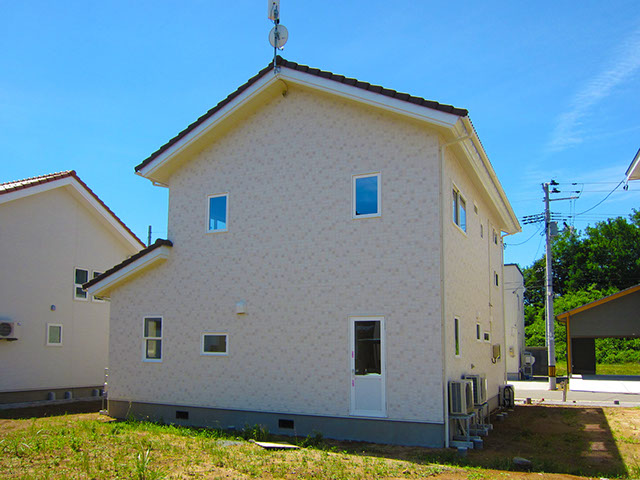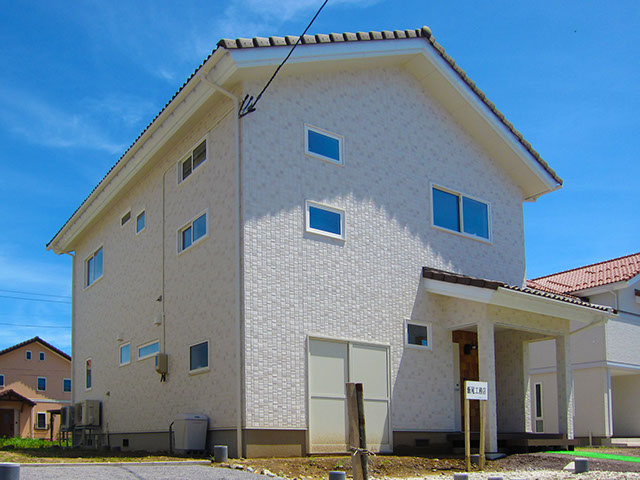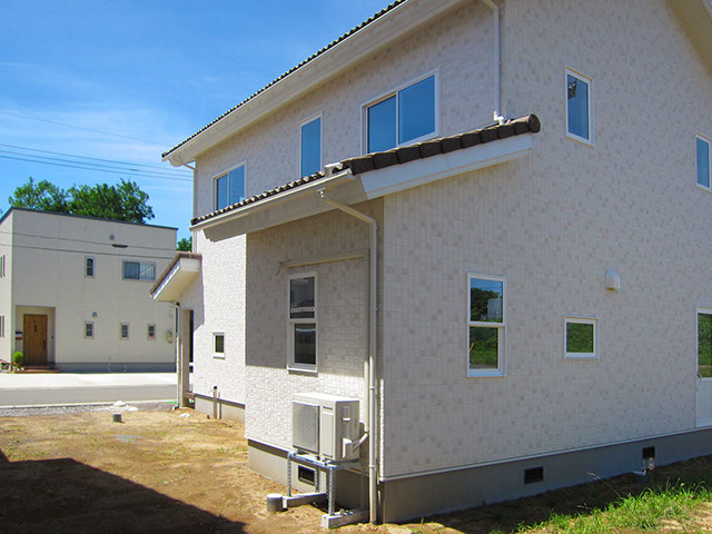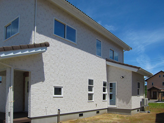 外壁にはドライジョイント工法使用し、シーリング不要で継ぎ目の無い仕上がりとなっています。メンテナンスコストを少なくて済みます。詳細は、ニチハ株式会社のドライジョイント工法紹介ページをご覧ください。(http://www.nichiha.co.jp/wall/dryjoint/index.html)