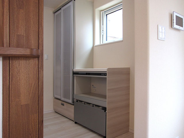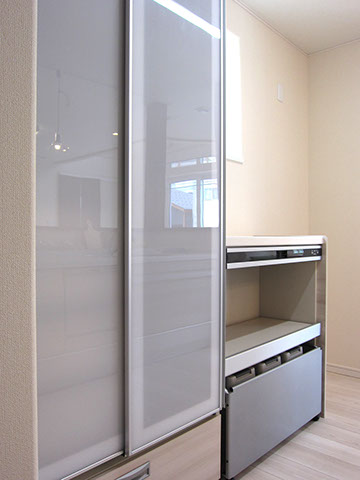 家事室と脱衣室を分けた作りで、忙しい朝、込み合う夜の時間もスムーズ利用。