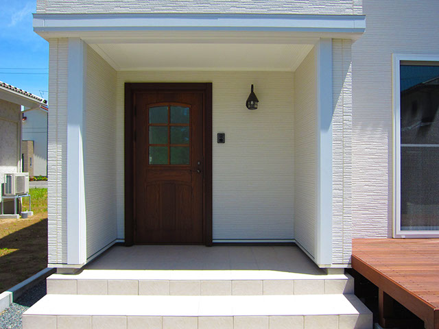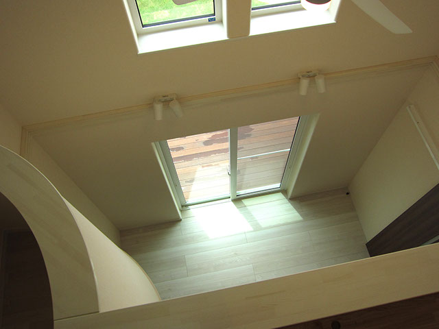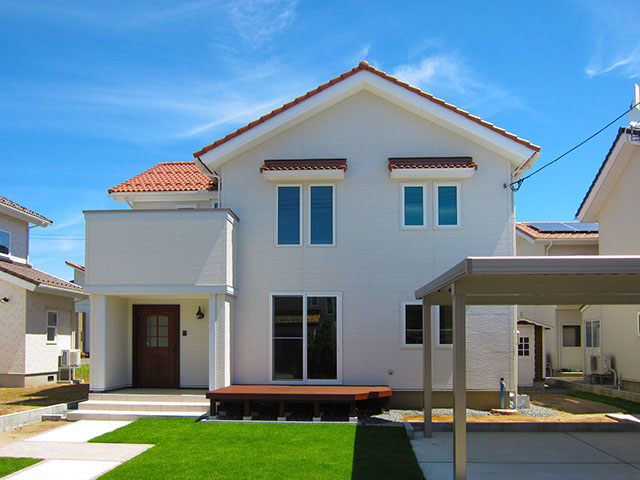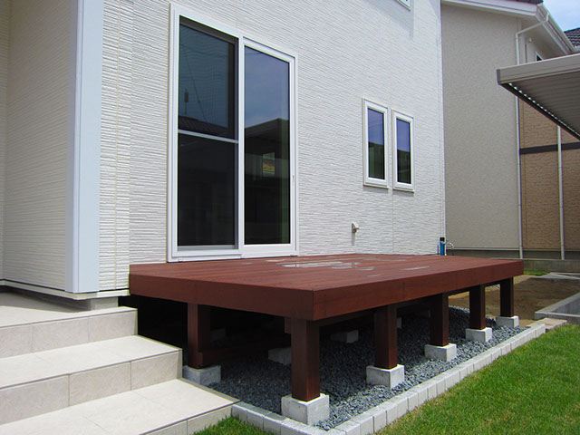 また、リビングと庭をつなぐ赤いウッドデッキもポイントです。