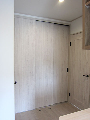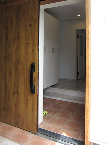 使い勝手を考慮し、玄関には断熱引戸を採用しました。