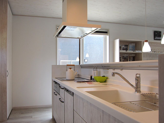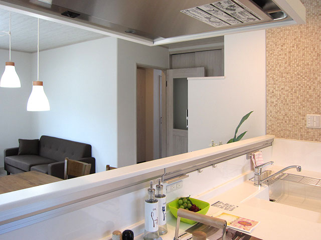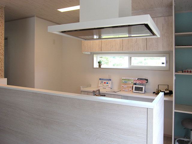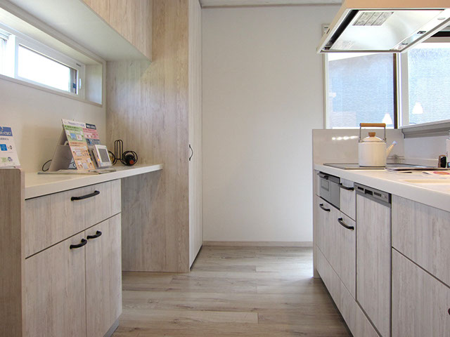 キッチン後方に奥様のワークスペース、人が来たときはと閉めれば『パッ』と隠せちゃう!